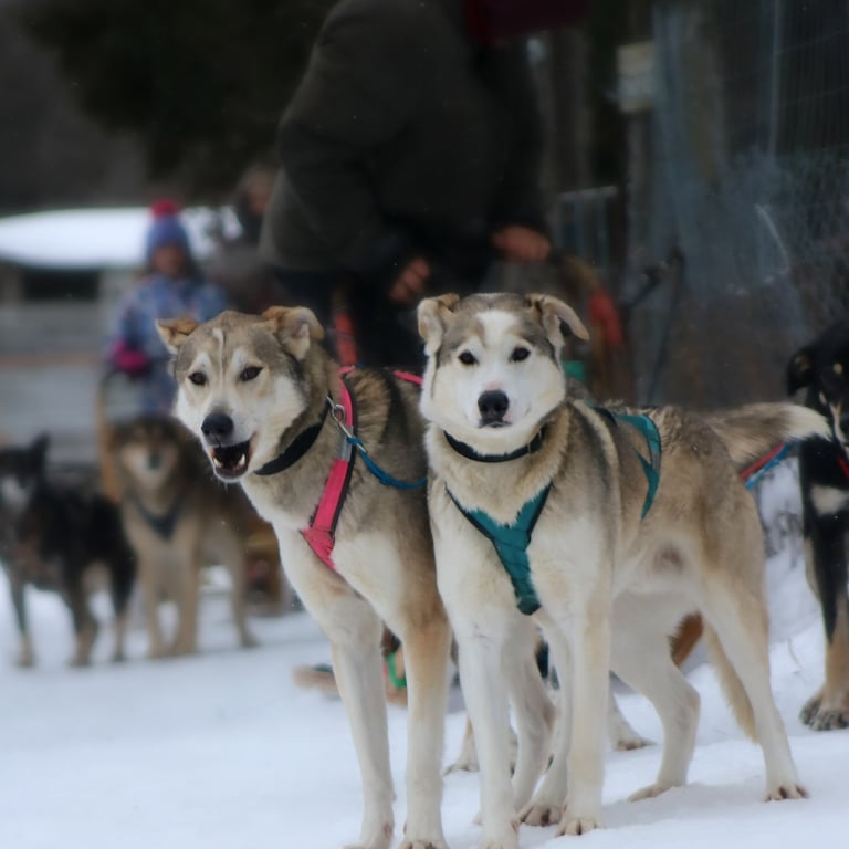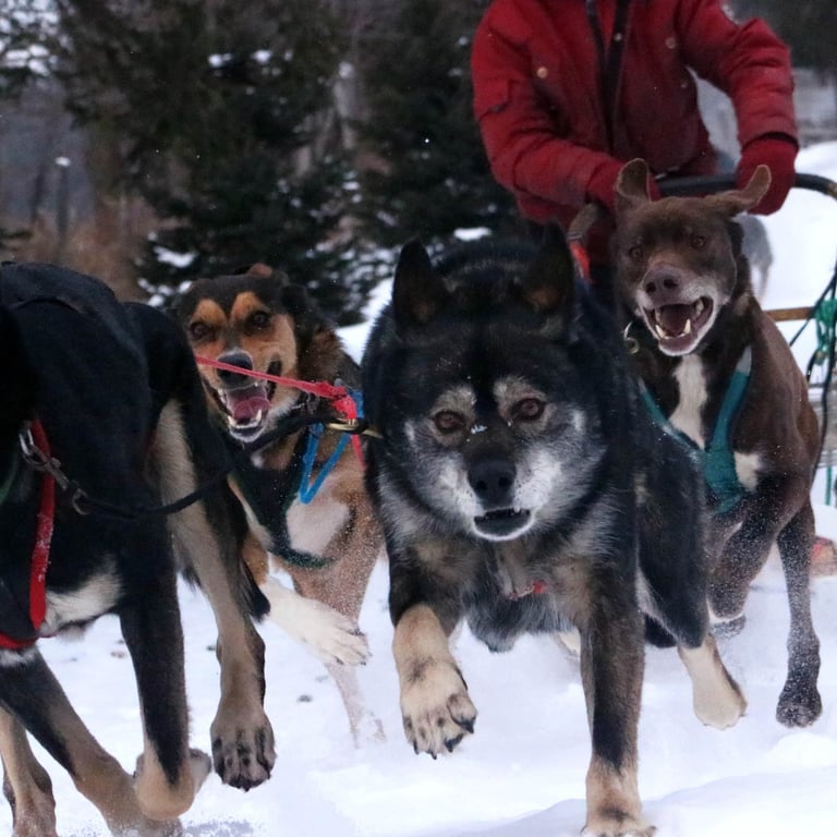 Experience real dog sledding in Brownsburg-Chatham, just 1 hour from Montreal. Learn to drive your own sled, connect with our dogs, and enjoy winter nature in a calm, respectful setting